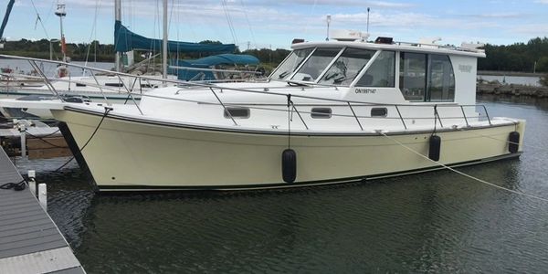 Breezeway Yachts is proud to present this exceptional 2003 Mainship Pilot 34 Sedan. Currently located in the beautiful waters of Manitoulin, Ontario, with a planned move to Whitby, Ontario, this vessel represents a rare opportunity to own a meticulously maintained "Downeast" style cruiser.